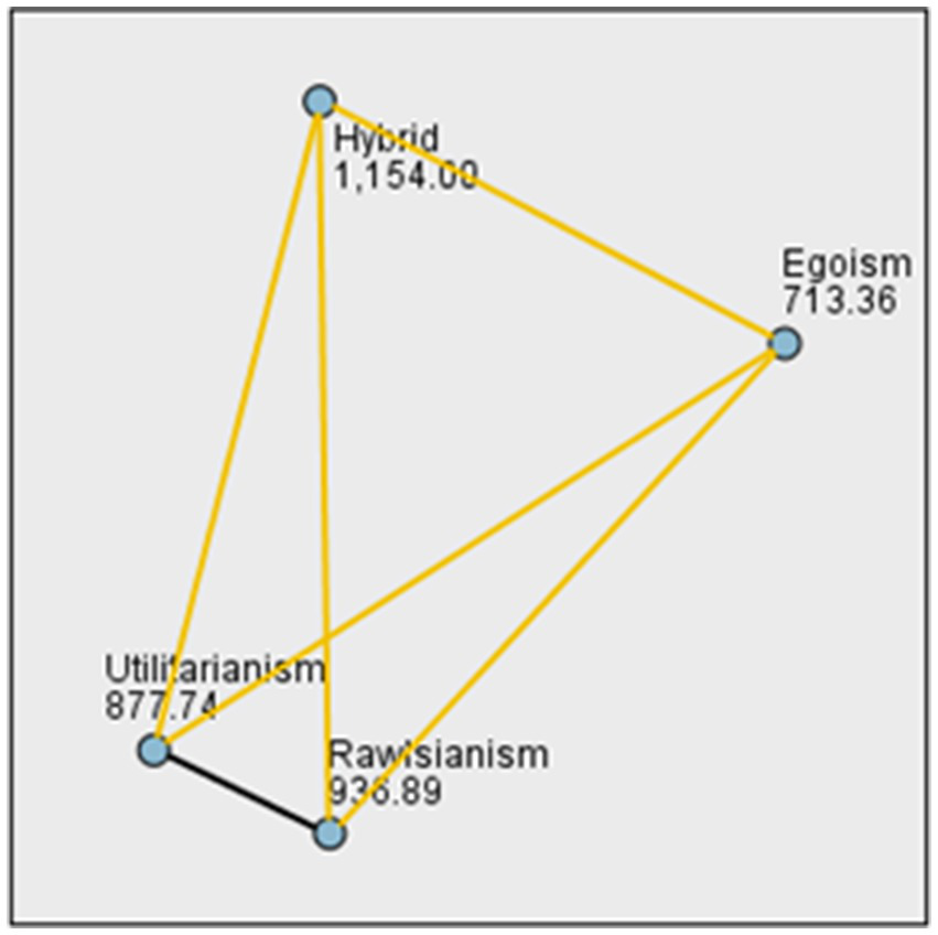 | Rawlsianism vs. Egoism | 223.53 | <0.0001 |