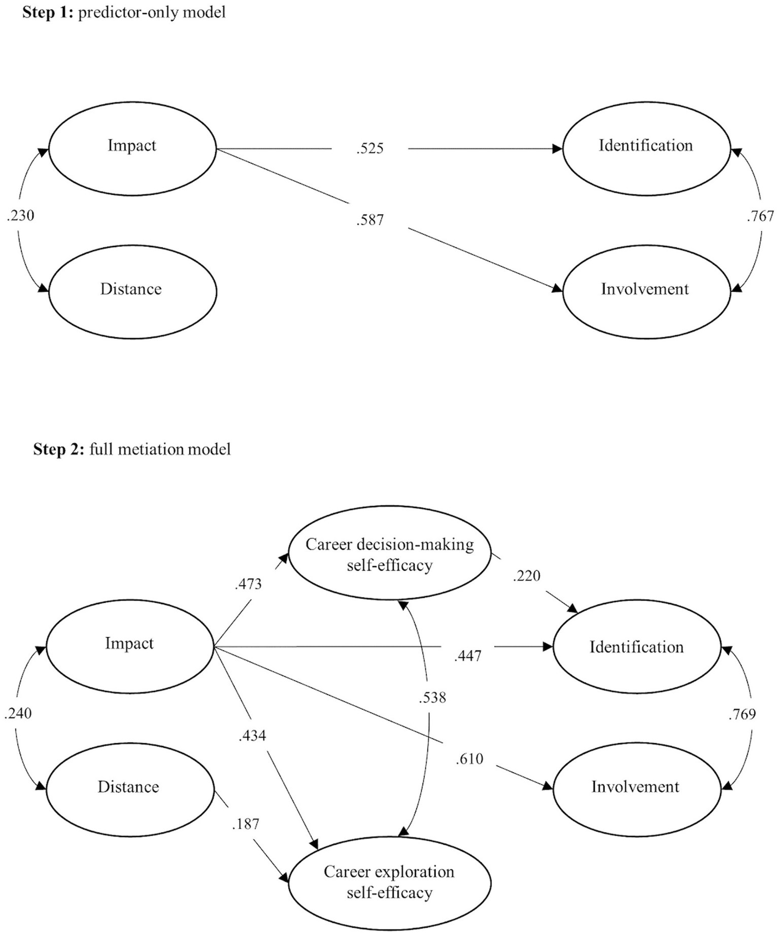 Predictor-only model and full mediation model.