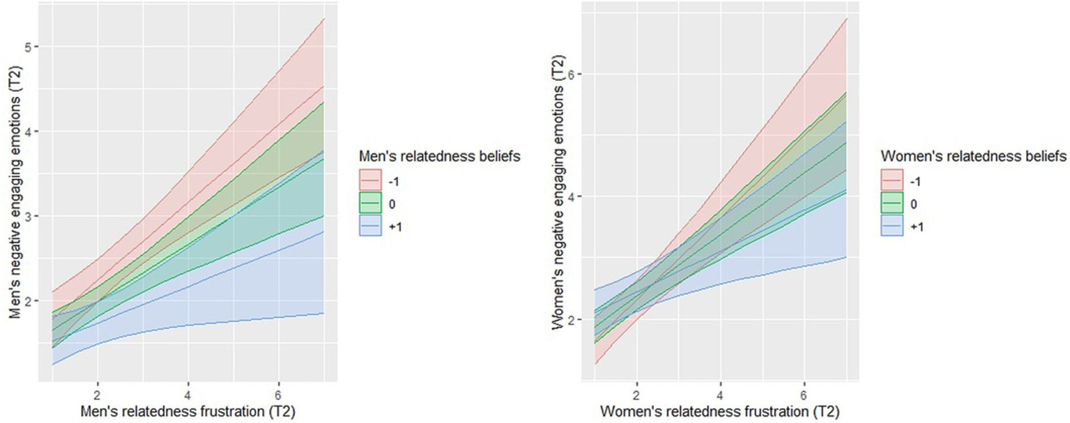 H6: The association between partners’ relatedness frustration and negative engaging emotions will be positively moderated by their own relatedness relationship beliefs.