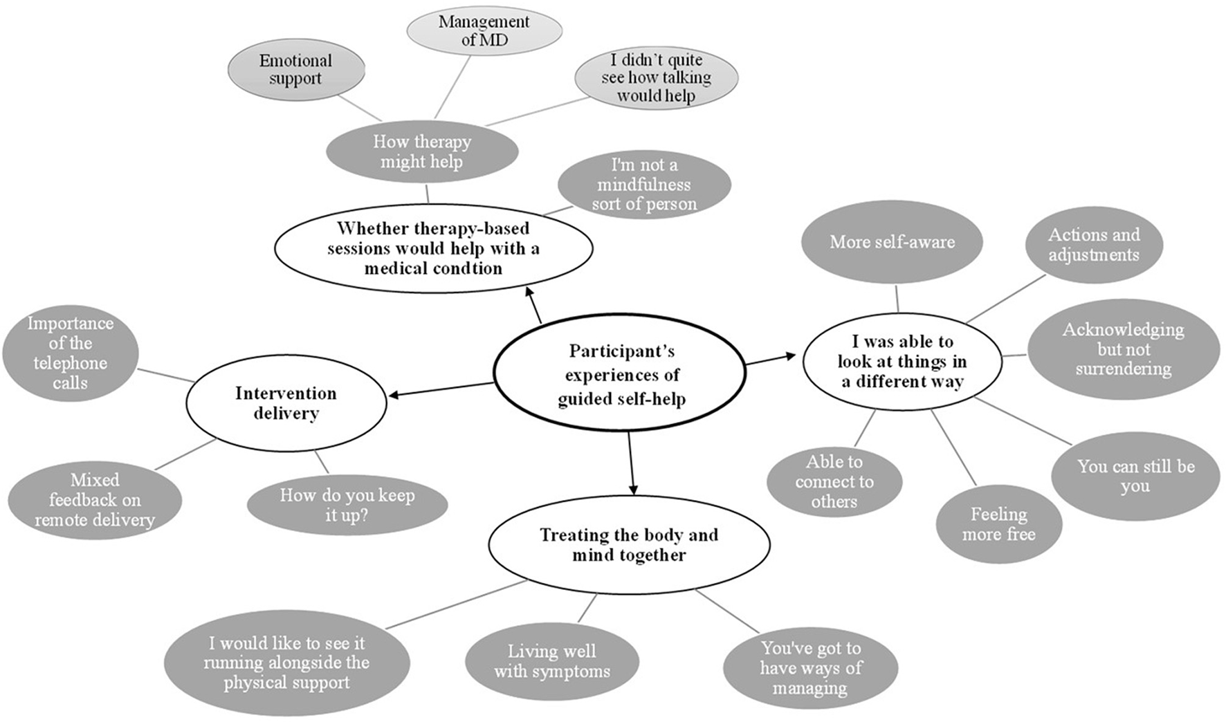 The first theme describes participants' recollections of their thoughts and expectations before receiving the intervention. Most participants appeared to be unsure about what a psychological intervention could offer to people with MD, as one participant observed: