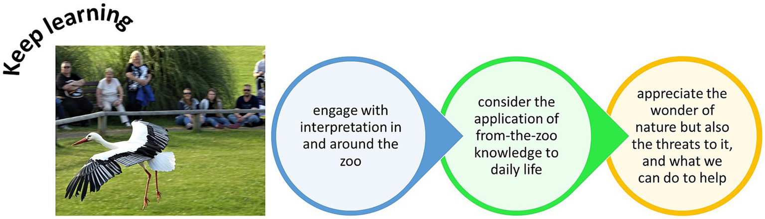 Opportunities to keep learning by visiting a zoo, interacting with signage and with animal displays or encounters, and taking away key information to promote positive human Behavior change.