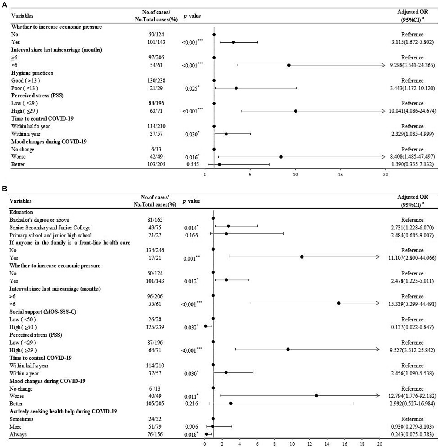 However, it’s still unknown what the psychological changes of a certain population are. Recurrent pregnancy loss (RPL) refers to two or more spontaneous miscarriages (EL Hachem et al., 2017), including biochemical pregnancies in our study. During a pandemic, RPL women faced concerns about fertility issues in addition to fear of infection, economic pressure, family members’ infection, their health and infants’, and future uncertainties (e.g., successful pregnancy preparation, maintenance of pregnancy, and delivery process). Furthermore, prenatal anxiety and depression are not only connected with obstetric complications such as premature delivery (Grigoriadis et al., 2018), and miscarriage (Qu et al., 2017), but also with changes to brain structure and function (Adamson et al., 2018), and cognitive impairment (Davis and Sandman, 2010) in infants. Therefore, the mental health problems of RPL women are extremely important.
