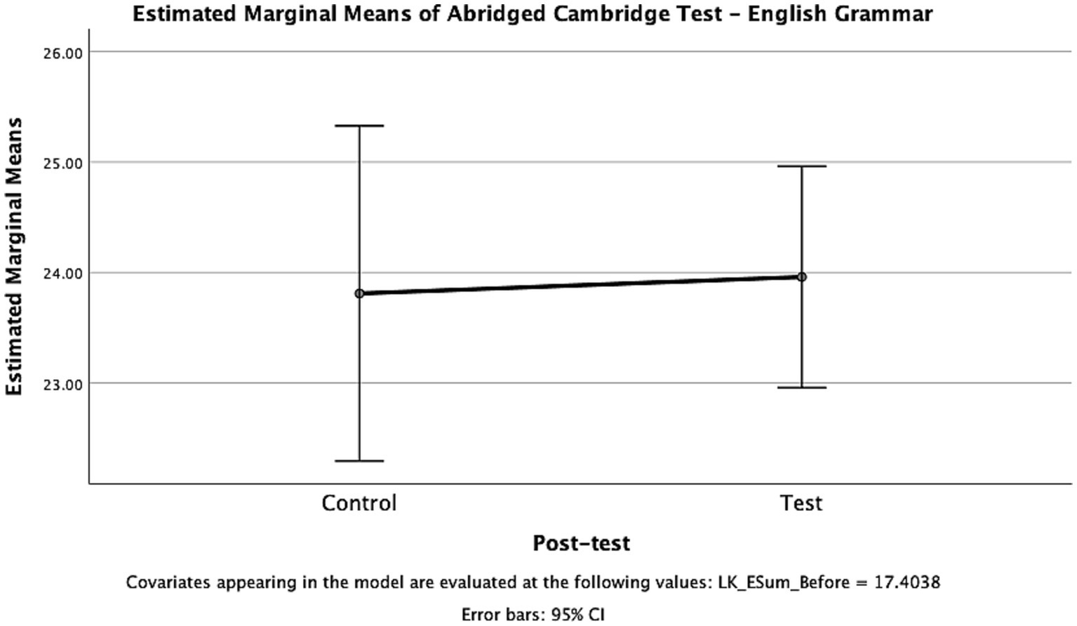 Estimated Marginal Means of Abridged Cambridge Test – English Grammar.