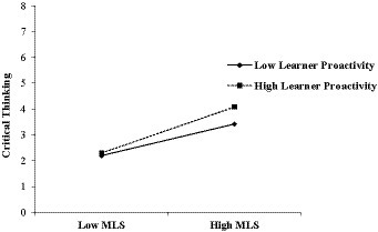 H6: Learner proactivity moderates the connection between MLS and critical thinking in such a way that this association will be stronger for students with a high level of proactivity than for those with low proactivity.