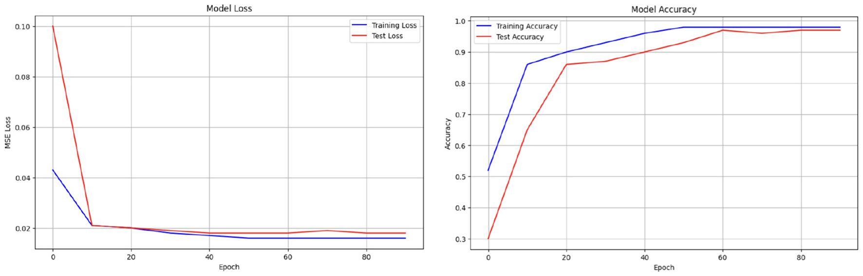 During training, Binary Cross Entropy (BCE) loss was employed instead of Mean Squared Error (MSE) loss, given the binary classification nature of the problem. The output layer was designed with a sigmoid function, aligning with BCE loss.