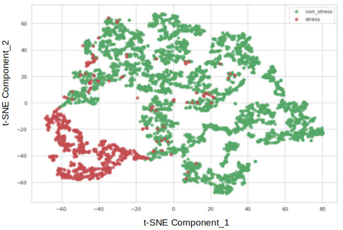 Figure 6. Visualization of stress and nonstress classes via t-SNE by reconstructing the latent representation of non-stress input.
