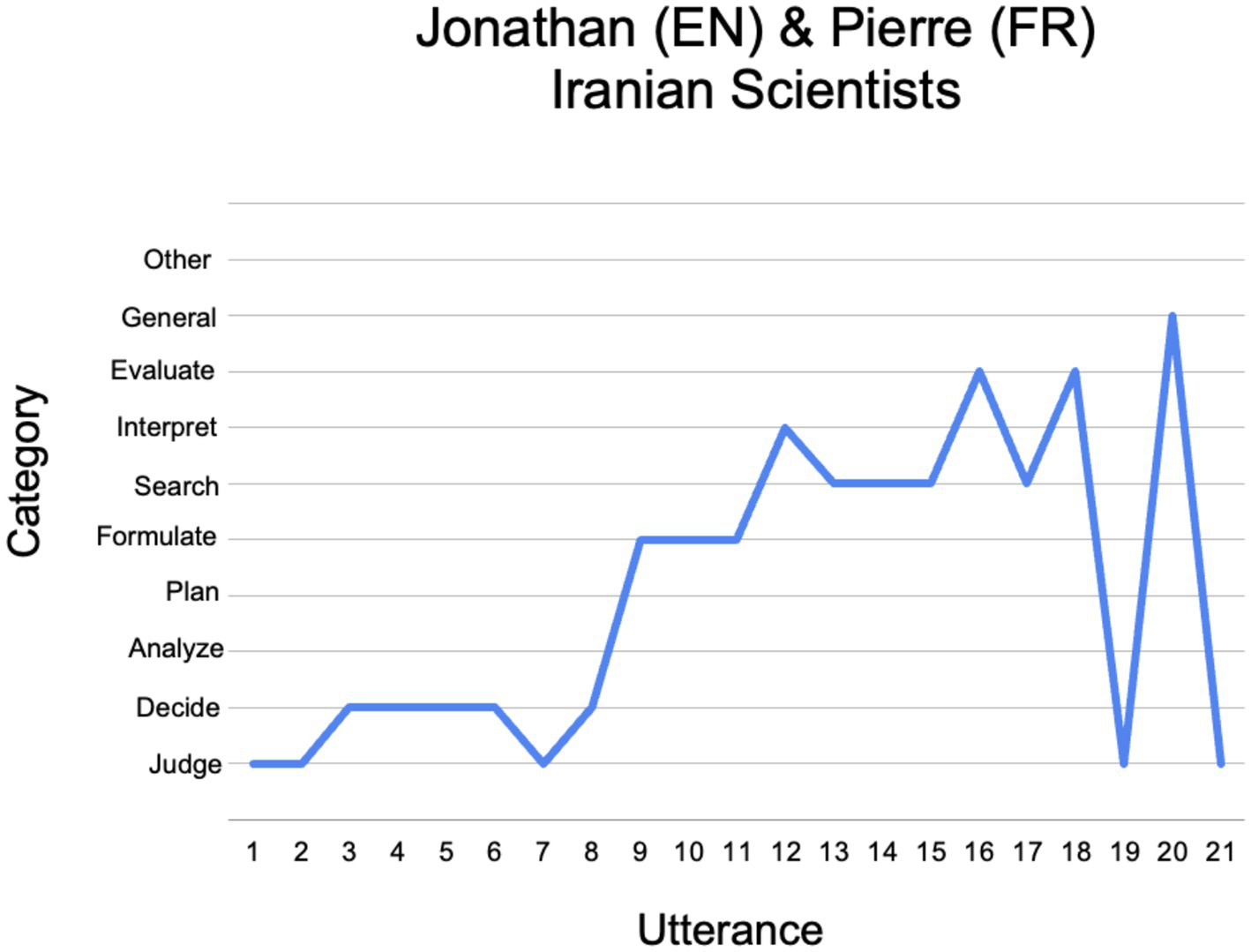 Here, and below, utterance numbers appear in square parentheses following each excerpt, alongside initials indicating the Tweet and the participants, and followed in round parentheses by the relevant coding category. For example, in the excerpt above, Utterance 6 in Jonathan and Pierre’s deliberation about Iranian Scientists appears as [IS-JP-6 (Decide)].