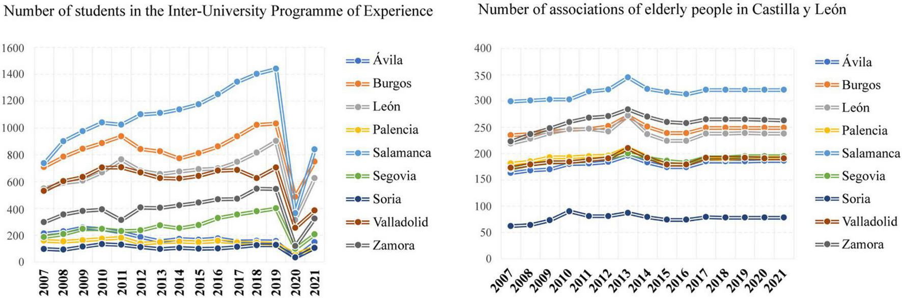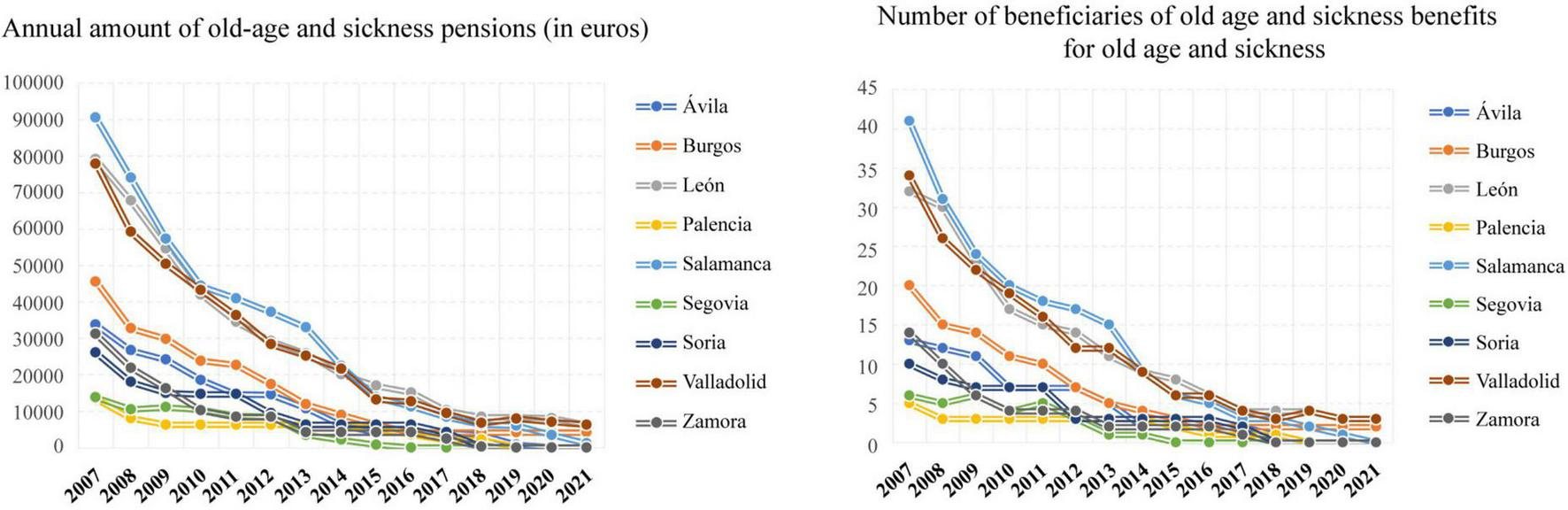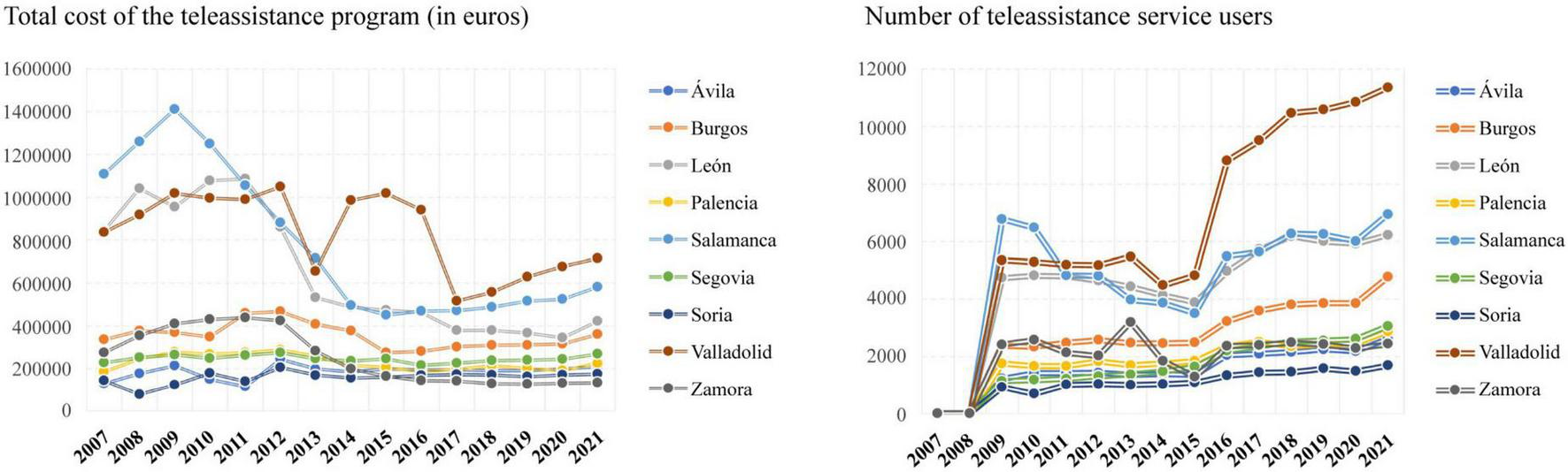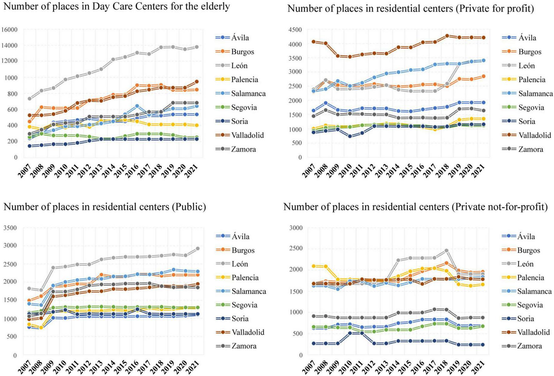 To test the established hypotheses, we selected as target population elderly people (65 and over) living in the autonomous community of Castilla y León (Spain). We worked with the annual information provided by the autonomous community of Castilla y León, which details the official data on social services for the care of the elderly in the 9 provinces of the autonomous community during the last years (2007–2021).