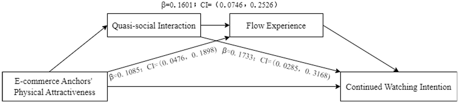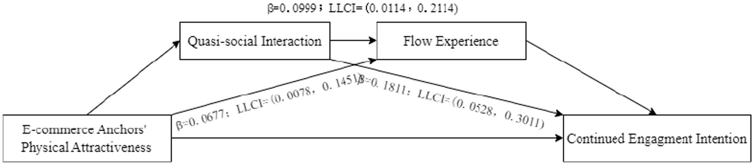 H4b: Quasi-social interaction and flow experience act as chain mediators between streamers' physical attractiveness and consumers' continued engagement intention.