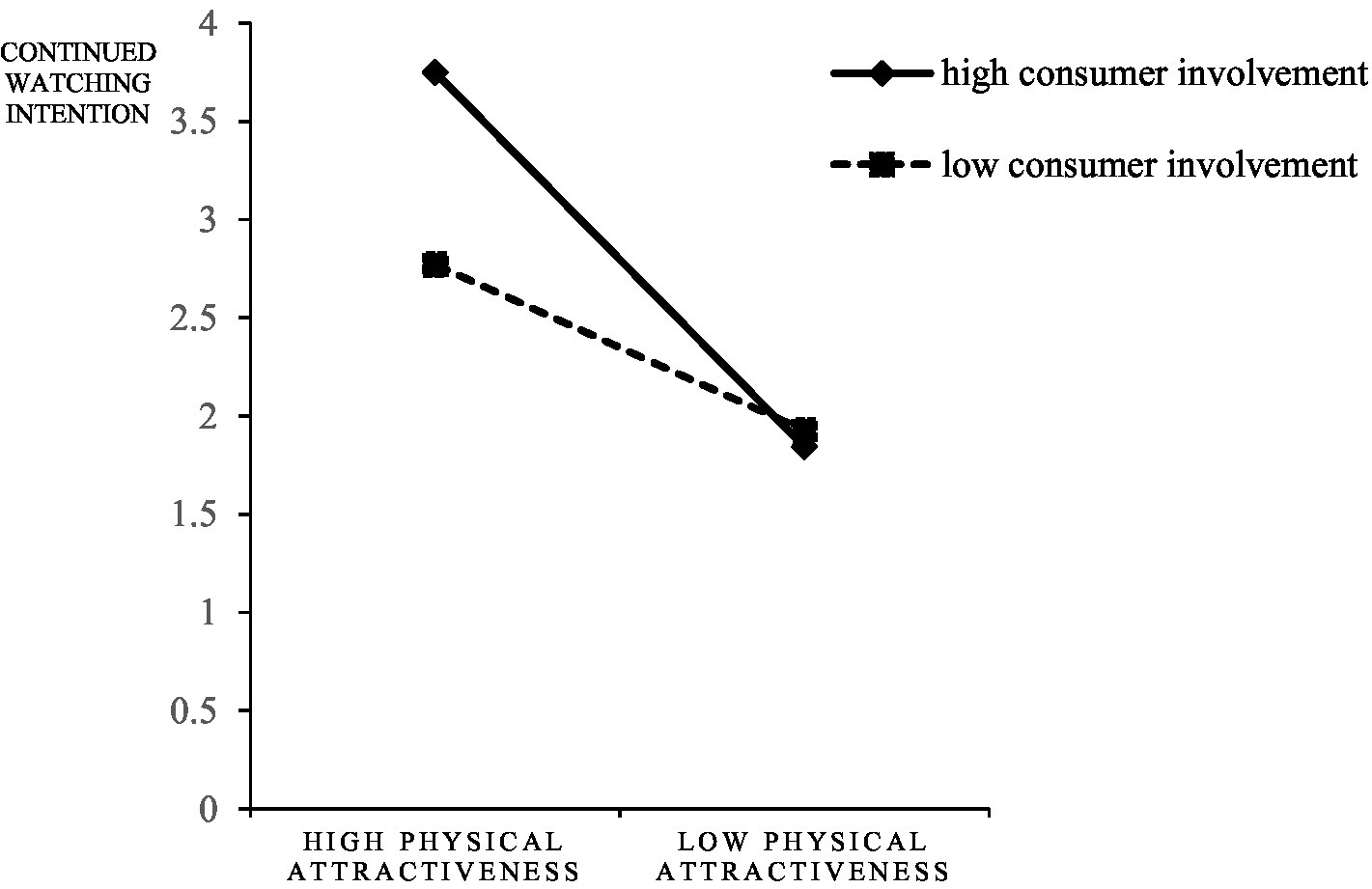 H5d/H5e/H5f: When consumer involvement is high, the effect of streamers with high physical attractiveness on consumers’ continued watching/continued engagement/purchase intention is not significant.