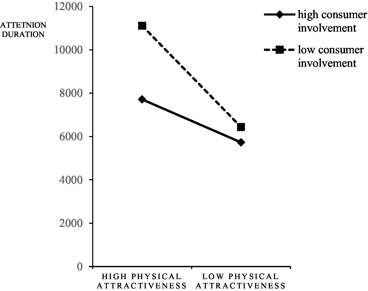H9: Consumer involvement significantly influences the relationship between streamers’ physical attractiveness and consumers’ attention duration. There is a significant difference in the attention duration that consumers with low involvement level spend on different physical attractive streamers, while there is no significant difference in the attention duration that consumers with high involvement level spend on different physical attractive streamers.