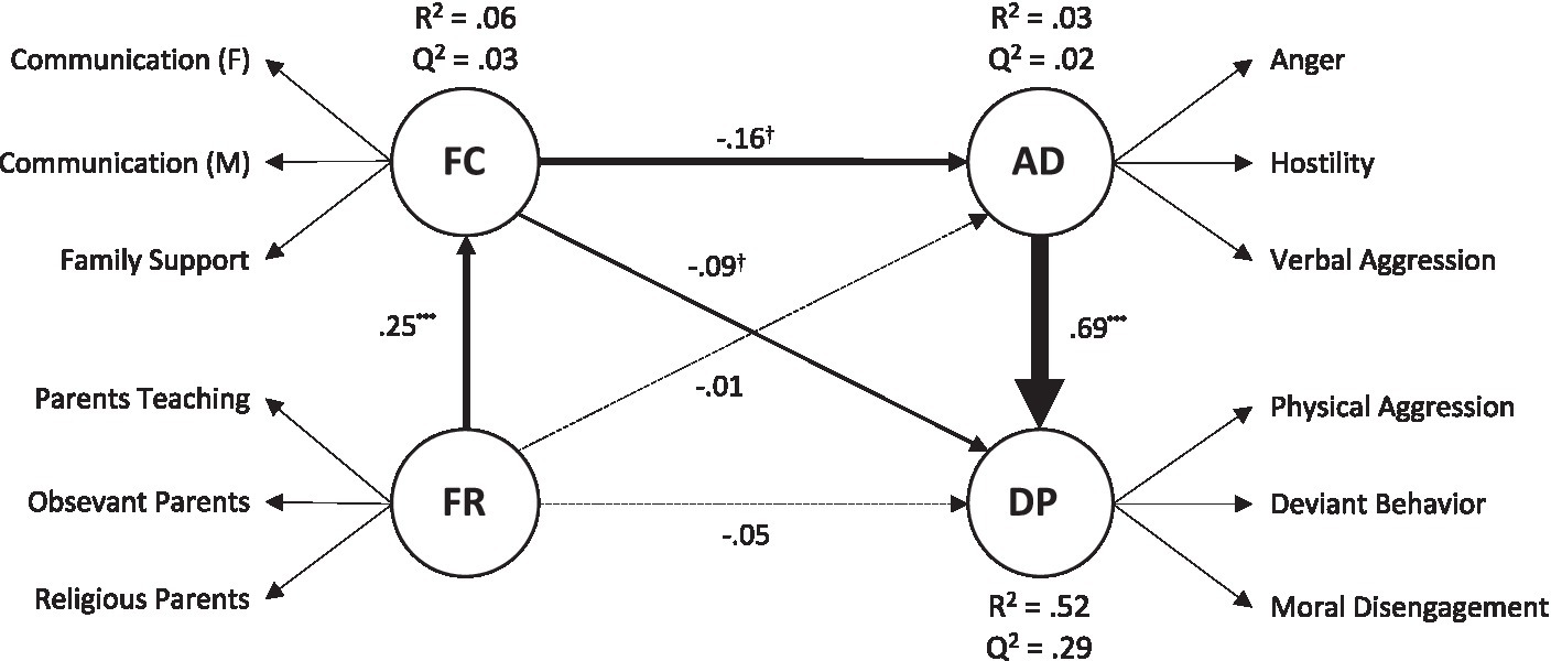 AVE, Average Variance Extracted; CR, composite reliability; FR, Family Religiosity; FC, Familiy Climate; AD, Anger Dysregulation; DP, Deviance Propensity.