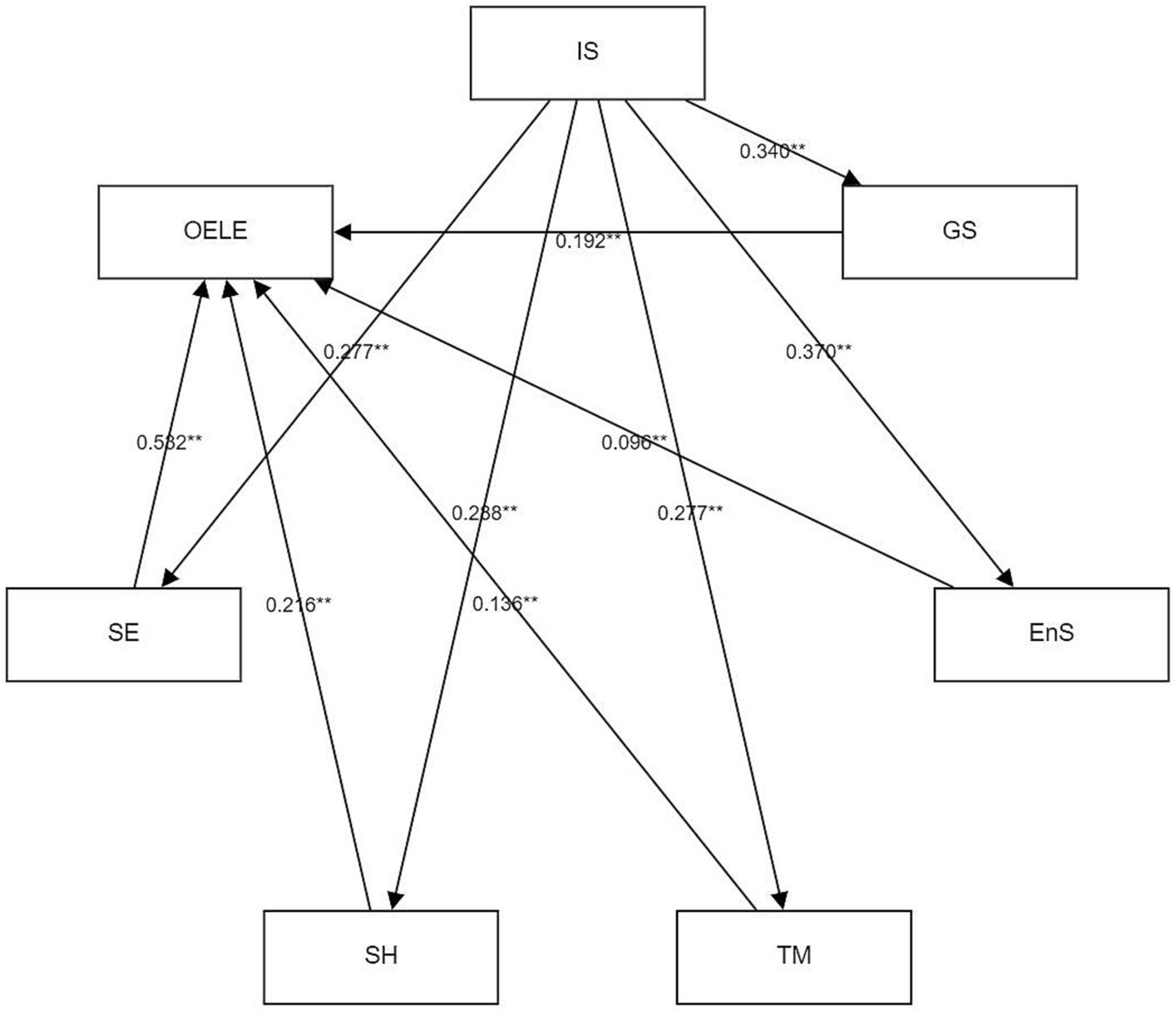 | Online English learning engagement (OELE) | 0.254** | 0.222** | 0.267** | 0.801** | 0.667** | 0.653** | 0.696** | 0.712** | 0.743** | 0.781** |