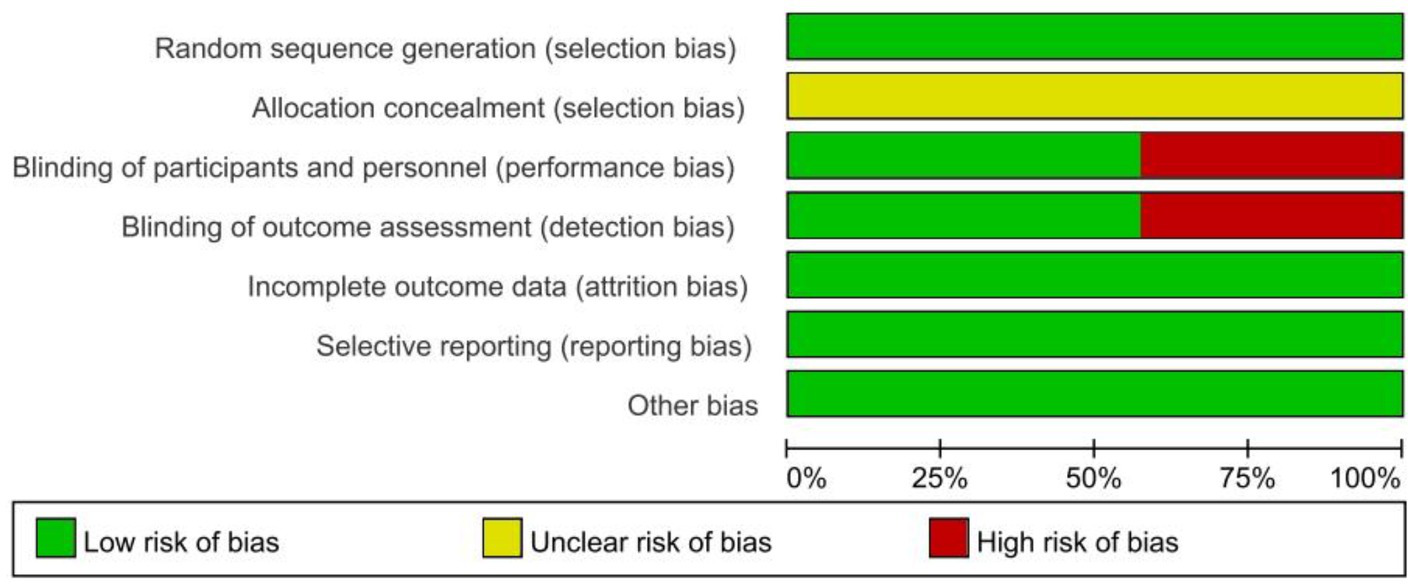 We utilized the Cochrane collaboration’s tool for assessing risk of bias to investigate the quality of the clinical trials included in this meta-analysis and JBI PACES to investigate the quality of cross-sectional trials (Higgins et al., 2011). The Cochrane collaboration’s tool for RCT trials assesses risk of bias on the following domains: selection bias, performance bias, attrition bias, reporting bias, detection bias and other bias. For each criterion, risk of bias was assessed as (1) low risk of bias, (2) unclear risk of bias, (3) high risk of bias. The JBI evaluation criteria for cross-sectional studies consisted of 10 items, each rated on a scale of 0 to 2. A score of 0 indicated that the requirements were not met; a score of 1 indicated that it was only mentioned but not described in detail; and a score of 2 indicated that a detailed, comprehensive, and correct description was given. Conflicts of opinion were discussed with a third review author until consensus is reached.