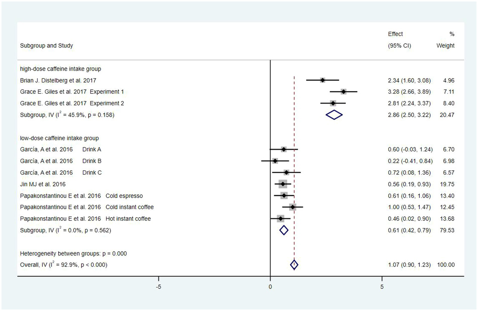 Forest plots of caffeine intake on anxiety.