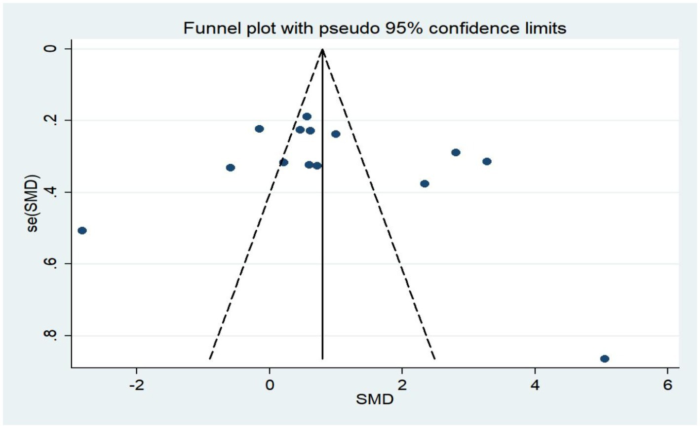 The funnel plot of this study is basically symmetrical and it can be judged that there is no publication bias in the literature of this study (Figure 7).