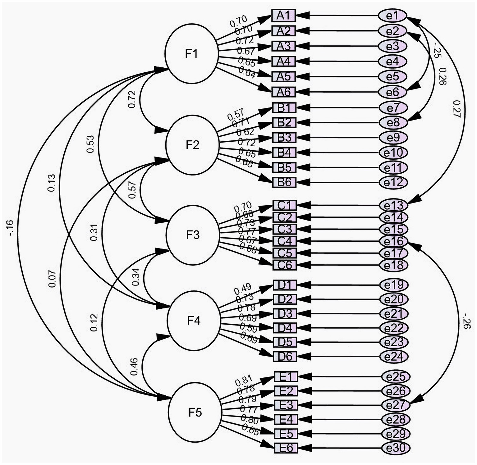 According to the outcomes of the Critical Ratio approach, each item’s critical ratio (CR) is 7.630 ~ 16.726 (p < 0.001), and all are >3.0. The findings of the correlation study revealed a correlation coefficient of r = 0.381–0.571 (p < 0.01) between the item score and the overall scale score. As each item’s Cronbach’s alpha value after deletion, which ranged from 0.880 to 0.885, did not exceed the Cronbach’s alpha coefficient of the Chinese version of the scale, 30 items were retained as a consequence (Table 2).