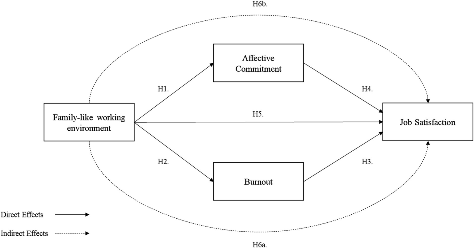 As discussed earlier, family firms tend to maintain higher levels of job satisfaction due to their strong position in critical mediating factors like trust, commitment, and loyalty (Llanos-Contreras et al., 2023). However, it is essential to examine whether this pattern holds for all factors crucial in preserving job satisfaction. This study proposes that burnout and affective commitment are two critical mediating variables in this context.