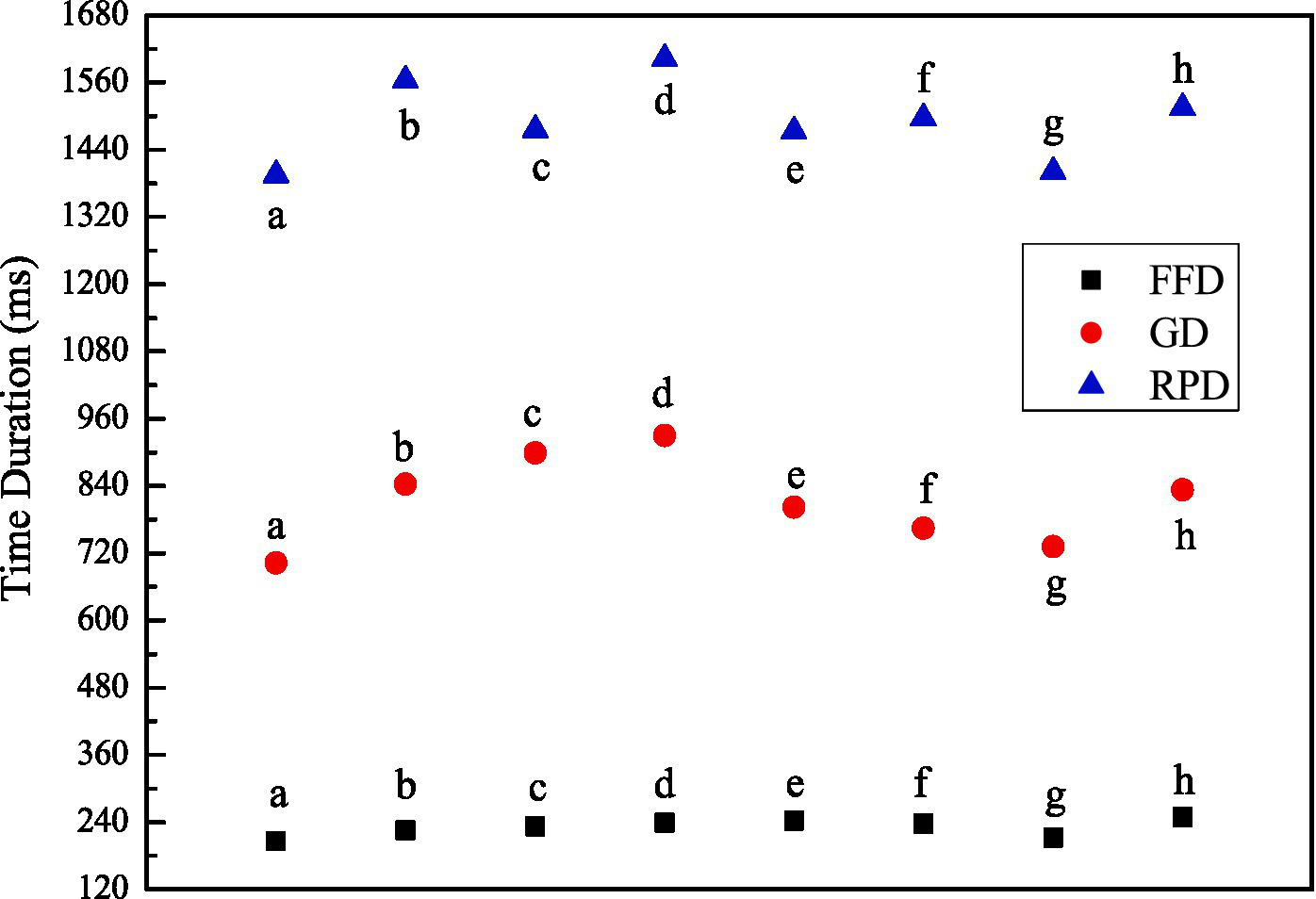 The experiment lasted about 25 min, and participants took short breaks between blocks. After the break, drift correction was conducted so that the eye-tracking recording did not drift away.
