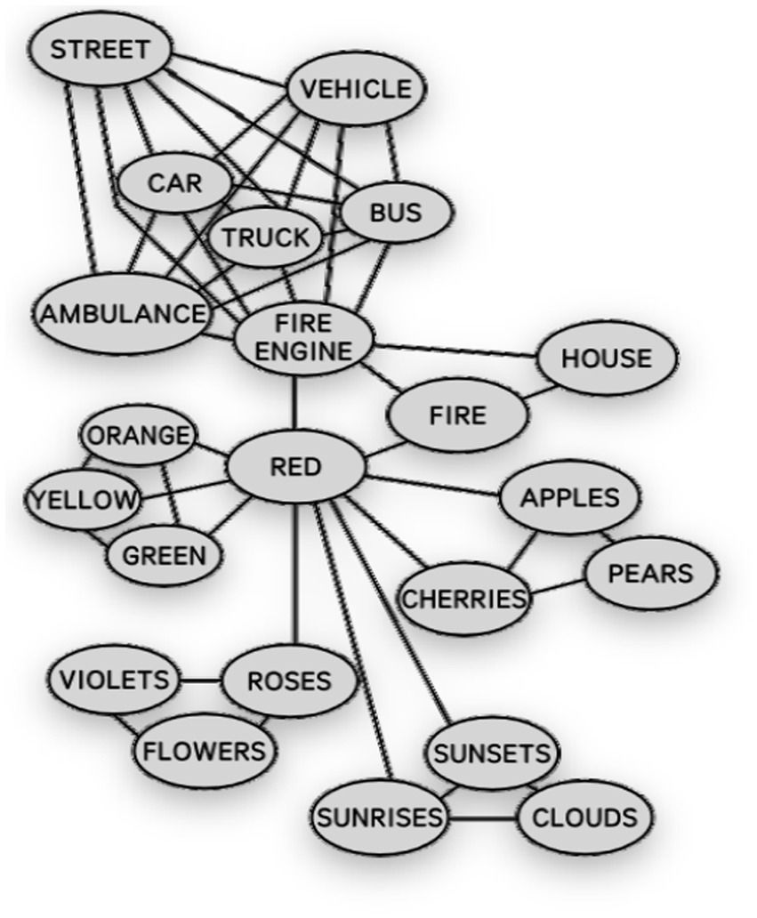 The Spreading-Activation Model was proposed by Collins and Loftus (1975). Spreading-Activation is the recursive spreading process of initial stimulation. This model posits that when a concept is stimulated, it initiates an activation process, and its effects spread in all directions, propagating to other connected concepts. However, the energy of activation diminishes with increasing distance, meaning that closely related concepts are more likely to be activated than those farther away. From the operative perspective, the SA Model functions as an organizational method of human memory. It asserts that memory organization resembles a complex network of connections, where specific memories diffuse among relevant concepts. In the SA Model, the strength of connections between concepts is represented by the links between nodes. The shorter the link, the stronger the connection, and conversely, the longer the link, the weaker the connection (see Figure 2).