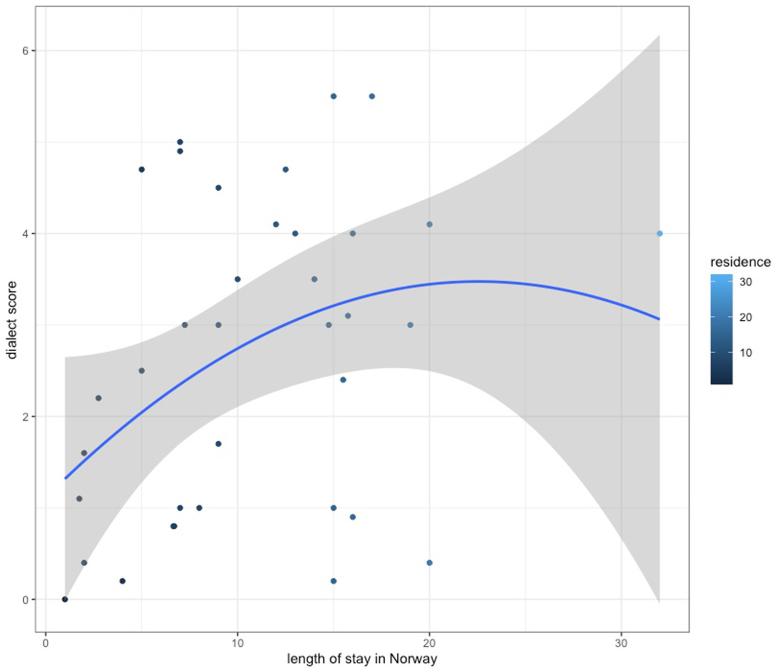 What are sociolinguistic predictors of dialect use? Does Norwegian proficiency or length of stay play a role?