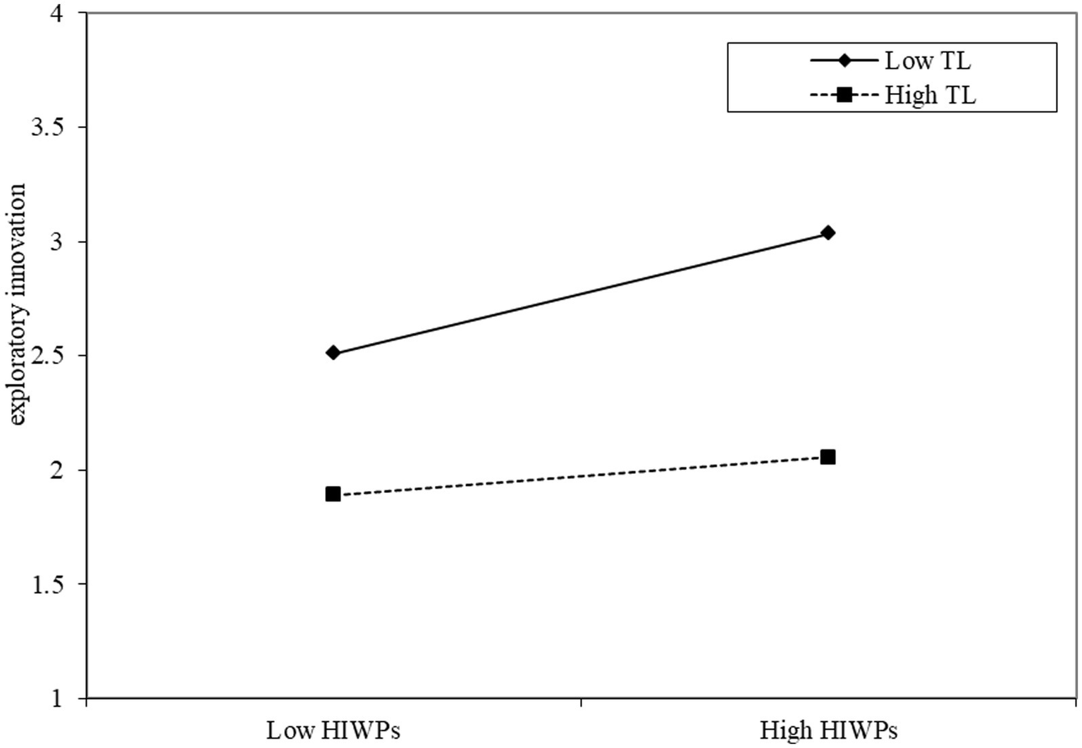 H8: Transformational leadership moderates the influence of high-involvement work practices on exploratory innovation, that is, the lower the level of transformational leadership, the stronger the predictive effect of high-involvement work practices on exploratory innovation.