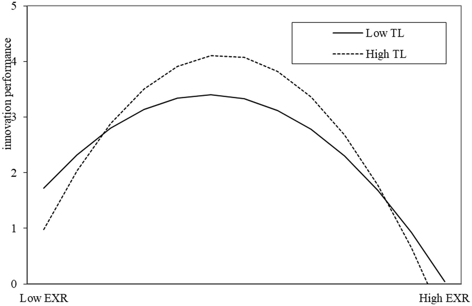 H6: Exploitative innovation has a significant inverted U-shaped relationship with elder employees’ innovation performance, that is, with the improvement of the level of exploitative innovation, elder employees’ innovation performance first increases and then decreases.