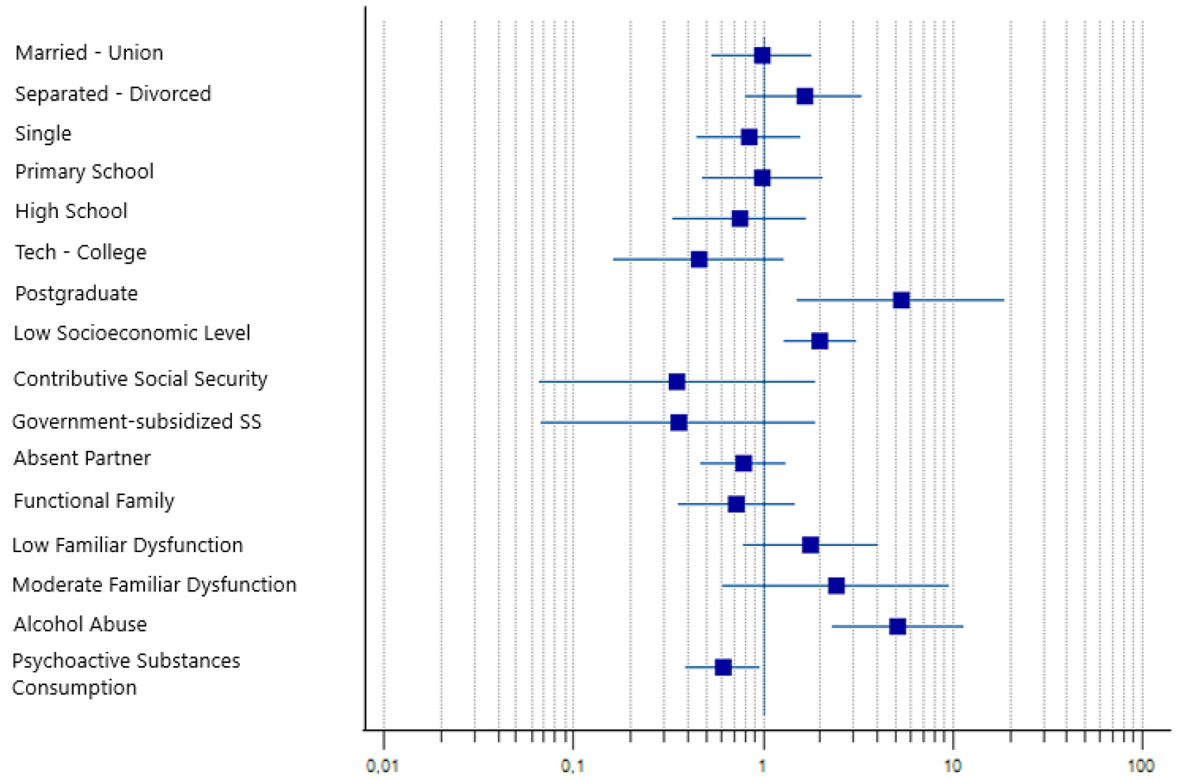 The statistical software used for database analysis was IBM SPSS Statistics Version 26 and Jamovi 2.3.18. The data analysis was divided into four stages. For the description of social and family characteristics of the population of older people in the city of Medellín in 2021, sociodemographic and family description variables were selected from the database, applying a univariate analysis for frequency measures and descriptives. Subsequently, a mental health index is constructed through a factorial analysis using the principal components method, finally obtaining the dependent variable named Mental Health Index in person over 60 years in Medellín (ISMPM60M). Next, the statistical association between sociodemographic and family variables with ISMPM60M was calculated through bivariate analysis obtaining crude prevalence ratios (PRc) for each association and confirmation with chi-square statistical tests with confidence intervals (CI) at 95%. In multivariate analysis, associations with statistical significance observed in bivariate analysis (p < 0.025) were examined, with logistic regression used to obtain adjusted prevalence ratios (PRa).