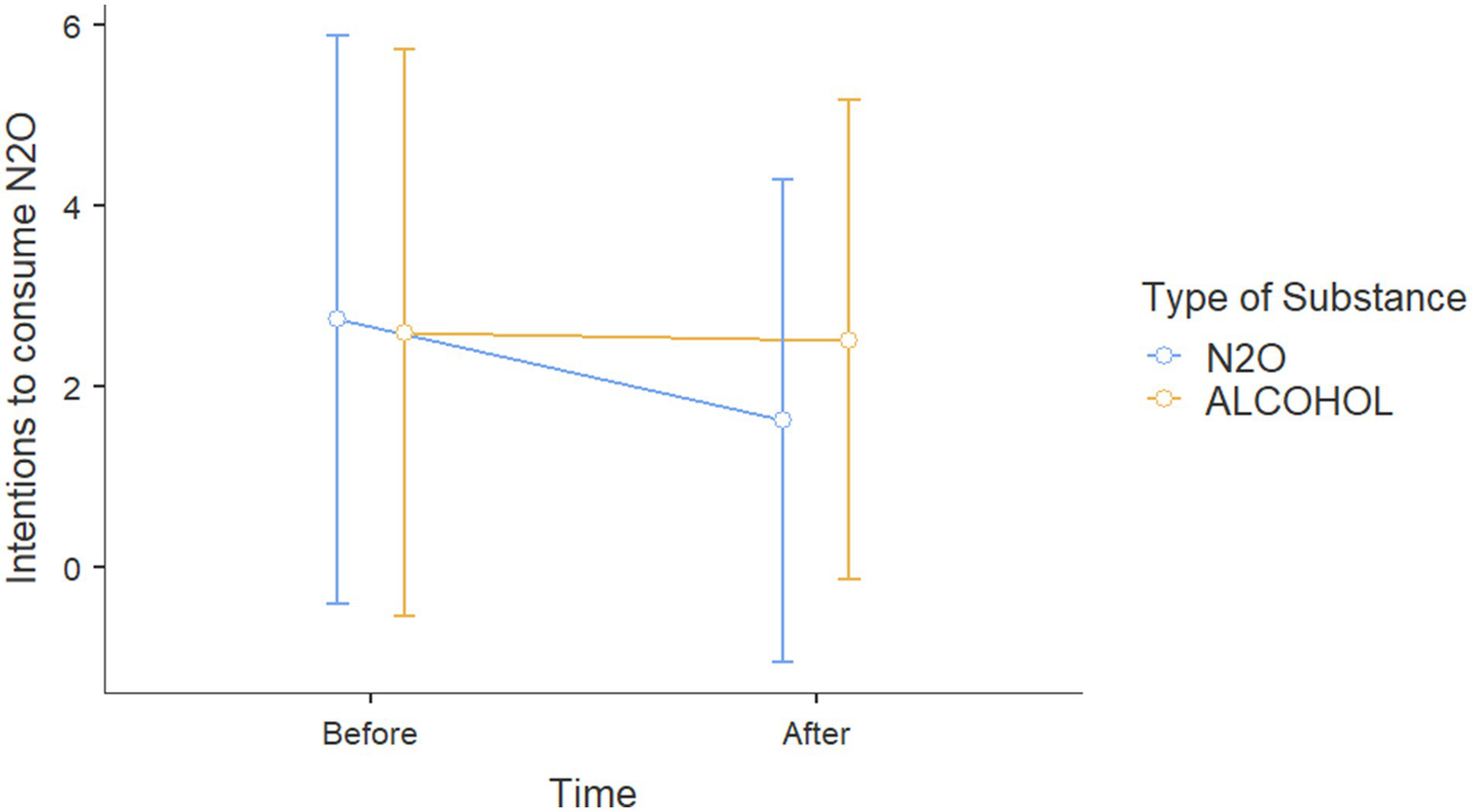 | Intention to consume N2O before exposure | N2O exposure | 40 | 2.950 | 8.391 |