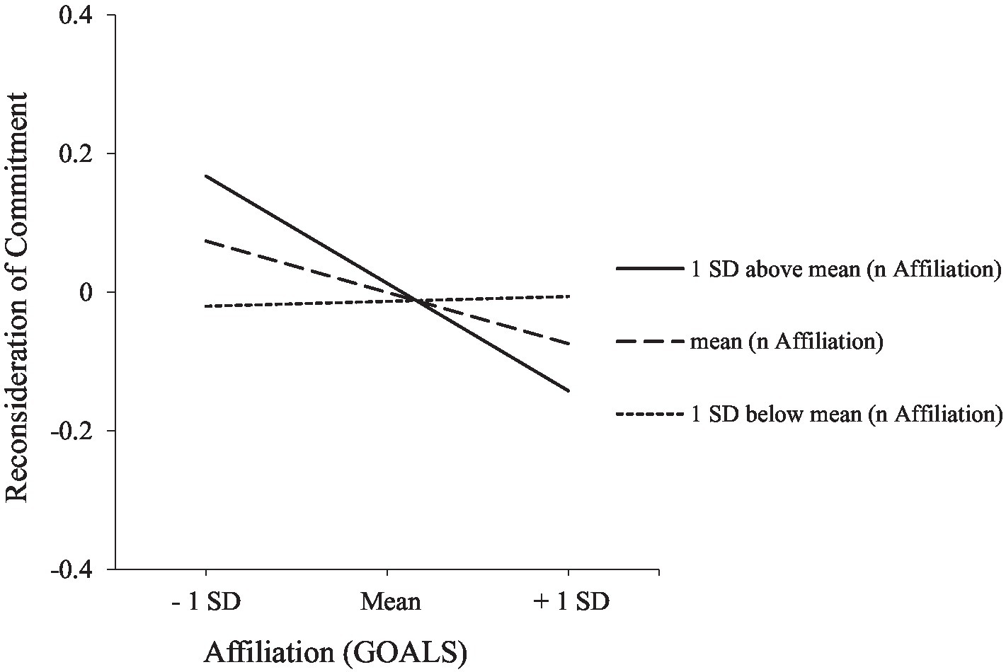 Regardless of adolescents’ cultural background, we found that commitment-related dimensions of interpersonal identity development mediate the link between successful attainment of affiliation goals and well-being, particularly among adolescents with a pronounced implicit affiliation motive; that is, the strength of the implicit affiliation motive moderates the association between goal success and identity commitment.