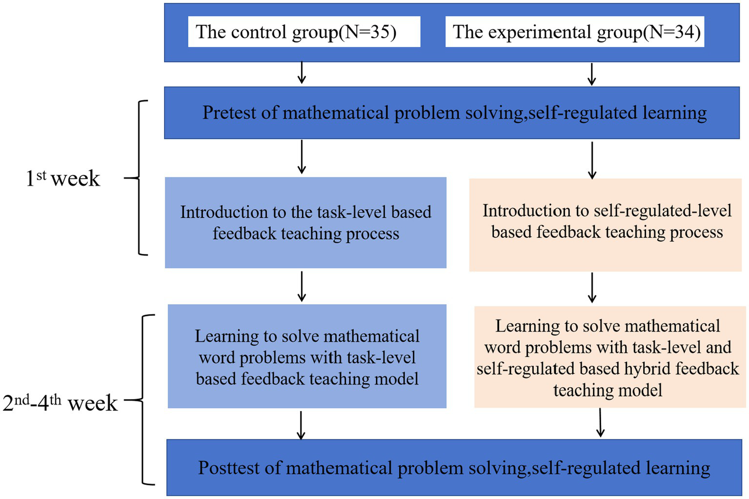 This research was reviewed and approved by the Institution Review Board of the affiliated institution (Code number: WZU-2023-099). The experiment was conducted in this study to investigate the effects of the personalized feedback approach on students’ mathematics word problem-solving performance and SRL. Both classes of students took the course guided by the same teacher. The entire experimental process followed a double-blind rule, whereby neither teachers nor participants were informed of the purpose of the experiment in advance. All students had previously completed the information technology courses and had mastered basic software and hardware knowledge. In other words, all the students had similar information technology backgrounds and experience.