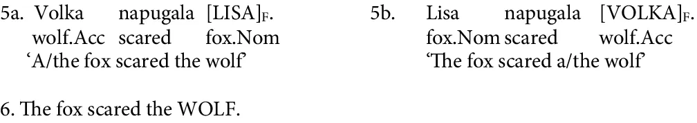 Here and below, CAPS in example sentences indicate the nuclear accent and F represents the focus.