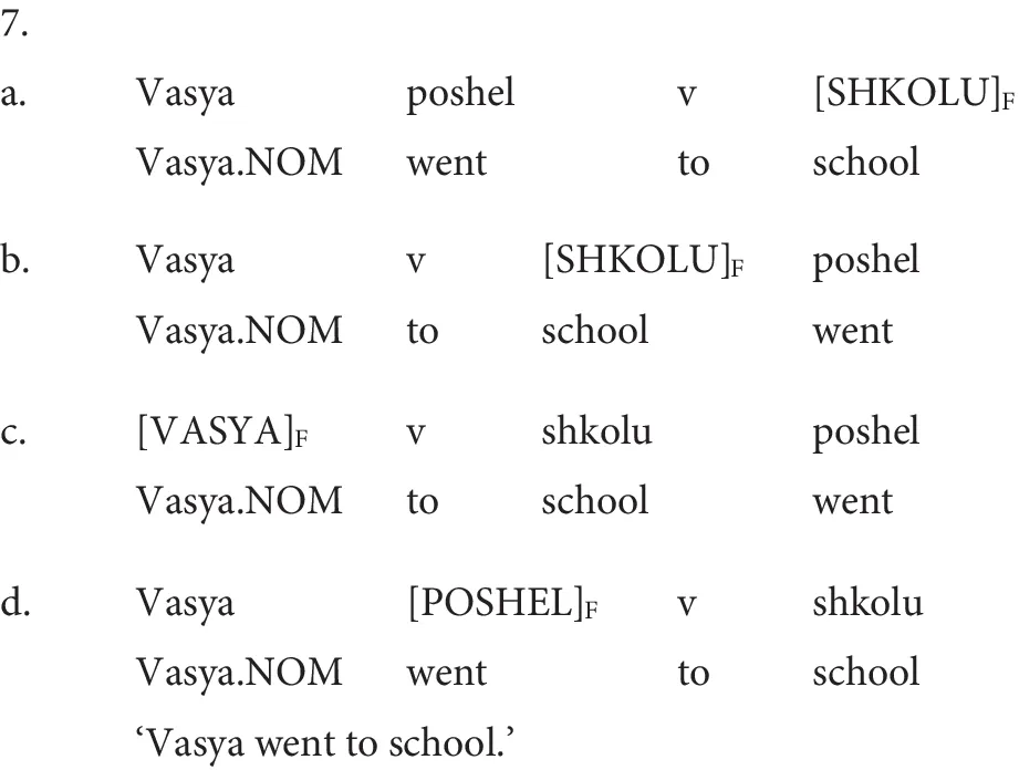 Keywords: focus, information structure, prosody, constituent order, Russian