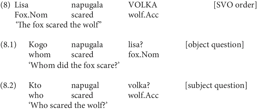 1. ^The question in (1a) can also receive a response in SVO order, in which case the nuclear pitch accent would be on the preverbal subject; in principle, (2a) can receive a response in OVS order, with the nuclear pitch accent on the preverbal object, though this is rather less commonly attested [see Kallestinova (2007)]. We leave this aside, since the studies reported in this paper examined exclusively sentences with nuclear pitch accent on the sentence-final constituent, as in (1b) and (2b).