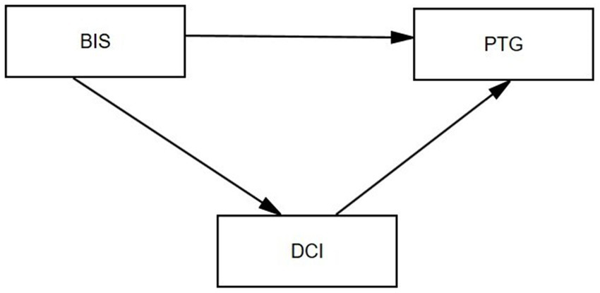 The hypothesis model of body image, dyadic coping, and post-traumatic growth (PTG) in patients with breast cancer. BIS: Body image self-rating. DCI: dyadic coping inventory. PTG: post-traumatic growth.