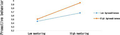 H4: Agreeableness moderates the positive relation between mentoring and proactive behaviors.