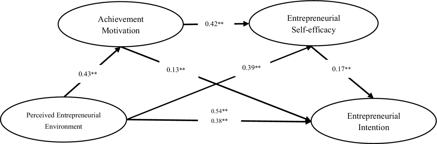 college students, perceived entrepreneurial environment, achievement motivation, entrepreneurial self-efficacy, entrepreneurial intention
