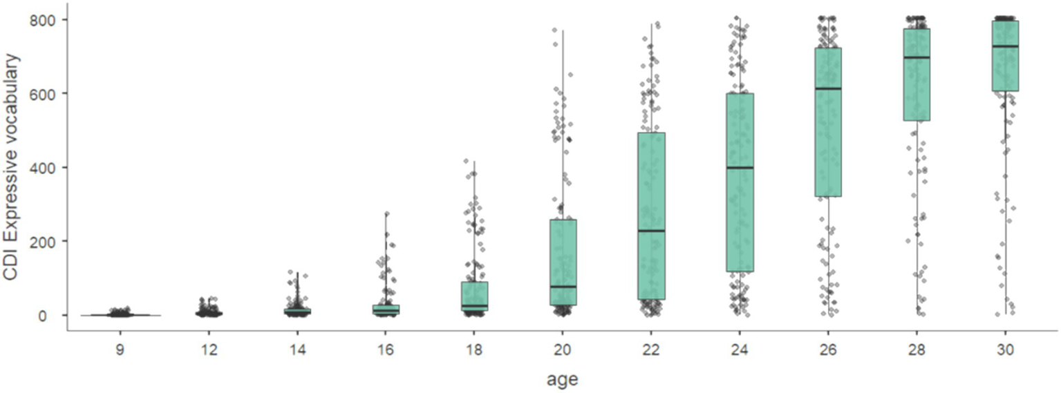 | Receptive vocabulary | Gestures | Expressive vocabulary | |||