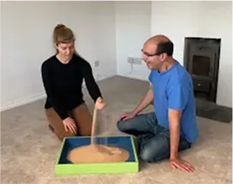 Another way to conceive of how to support flowing interaction is through the process, “Yes and…,” a key activity in improvisational theater (Salinsky, 2017). Here, we welcome what our partner offers (“Yes”), expand on that action or theme just a little (“and…”) and then allow space for our partner’s response. Our play partner might pick up a yellow bucket and tip some sand out of it… we could “Yes and…” this offer by finding our own bucket and tipping sand slowly… our partner may “Yes and…” this offer by catching the sand with their bucket and tipping it again… we could “Yes and…” again and catch the sand once more. When offers are responded to by actions that say, “Yes and…,” then something remarkable happens: people start to want to add to the unfolding story, to build a story together, and it feels good!