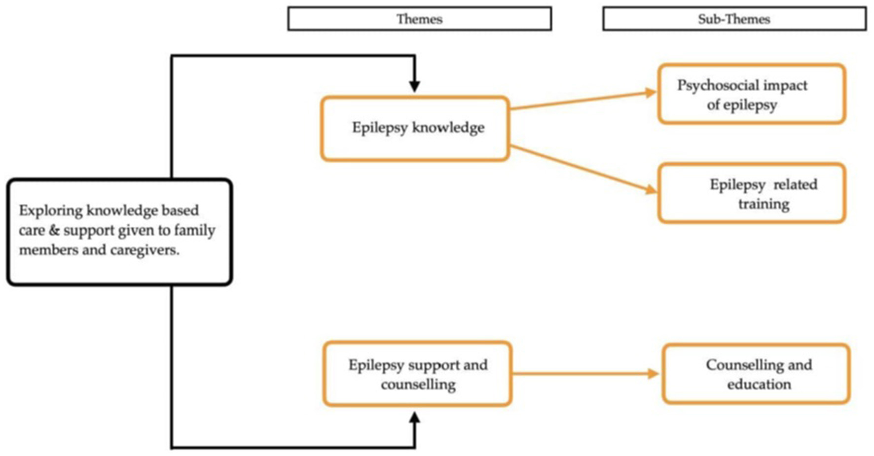 Two themes and three subthemes emerged from this study, as illustrated in Figure 1. The themes included epilepsy knowledge and epilepsy support and counselling. From the theme of epilepsy knowledge, two subthemes emerged: the psychosocial impact of epilepsy and epilepsy-related training. From the second theme on epilepsy support and counselling, the subtheme that emerged was epilepsy counselling and education.