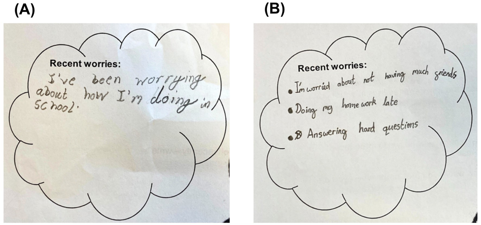(A,B) Examples of children’s worry responses.