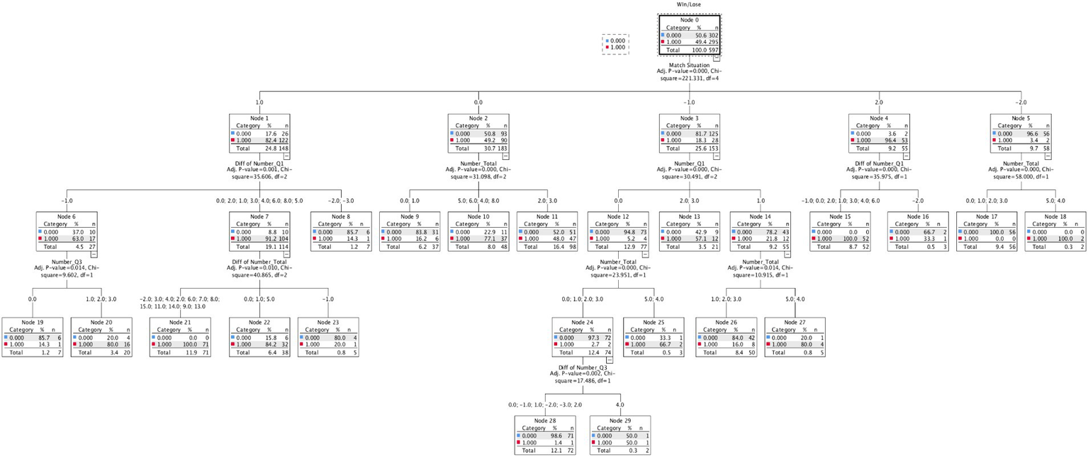 Figure 4. Results of the CHAID decision tree model with the outcome of the game as the independent variable.