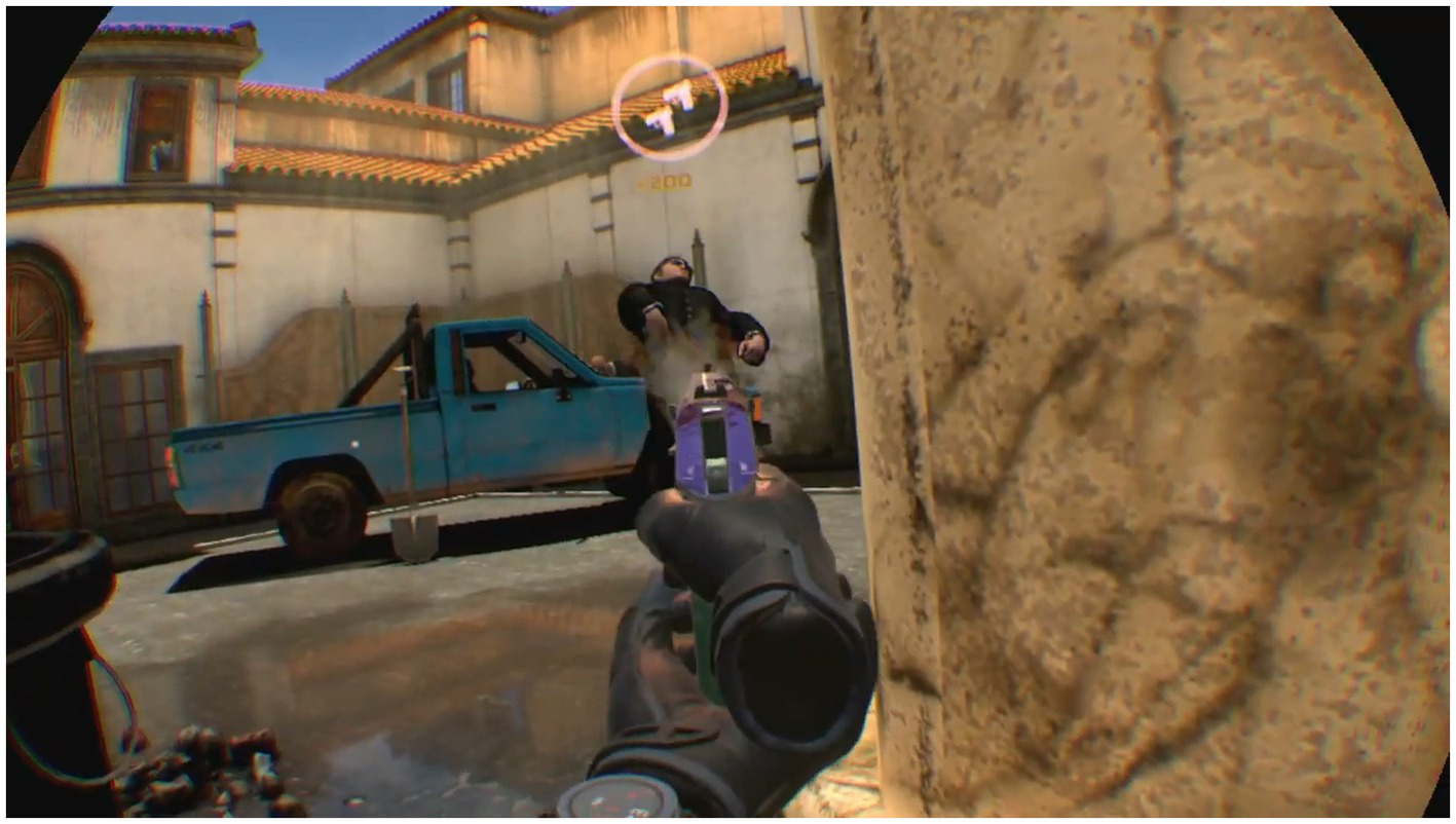 In-game screen shot of “Crisis Brigade 2: Reloaded” - “Montoya” mission. Adapted with permission from David Cano (Sumalab, Principal software engineer, developer of Crisis VRigade 2) http://www.sumalab.com.