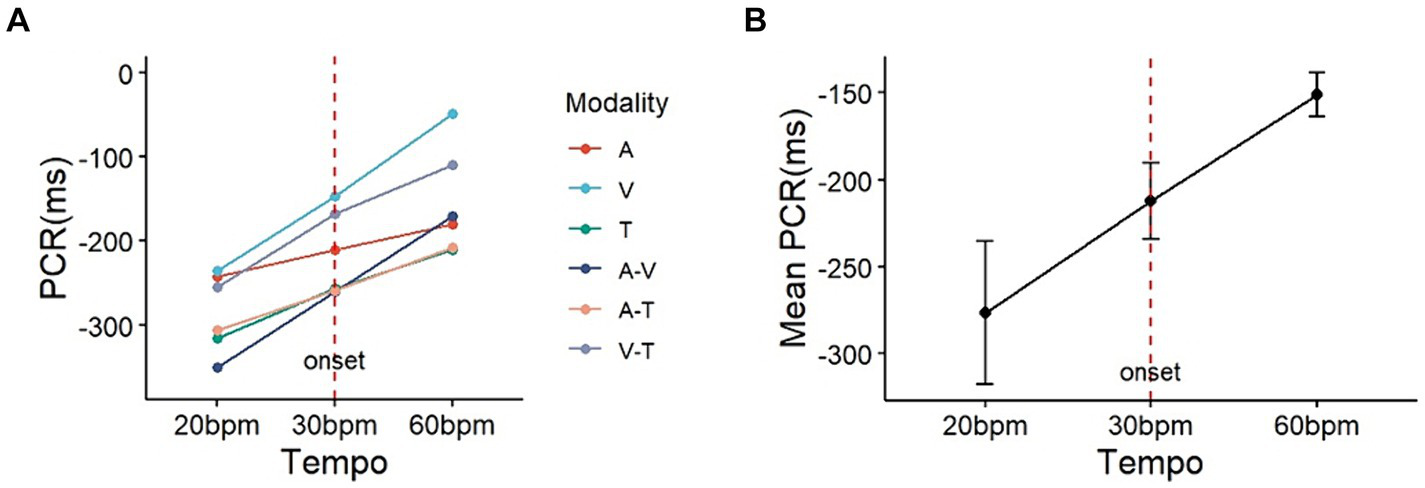 Analysis results of PCR (ms) by tempo change.