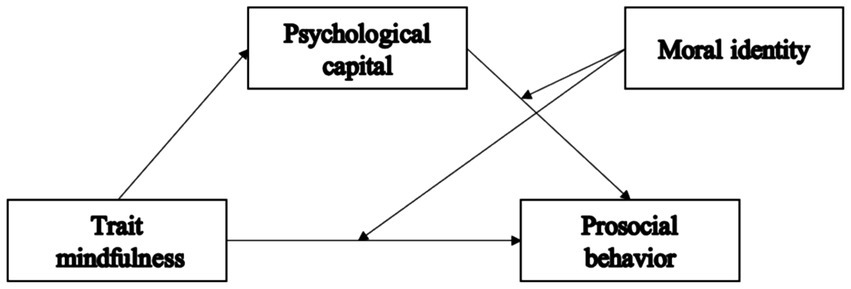 In this study, we propose that moral identity, as a key trait reflecting individual differences, may act as a moderator in the relationship between trait mindfulness, PsyCap, and prosocial behavior. The effects of trait mindfulness and PsyCap on promoting prosocial behavior may be amplified in groups with higher levels of moral identity. In other words, the impact of trait mindfulness and PsyCap on prosocial behavior may depend on the level of moral identity. Individuals with higher levels of moral identity are more likely to benefit from elevated levels of trait mindfulness and PsyCap. In this study, the following assumptions were made: (H3a) Moral identity moderates the relationship between trait mindfulness and prosocial behavior; (H3b) Moral identity moderates the relationship between PsyCap and prosocial behavior.