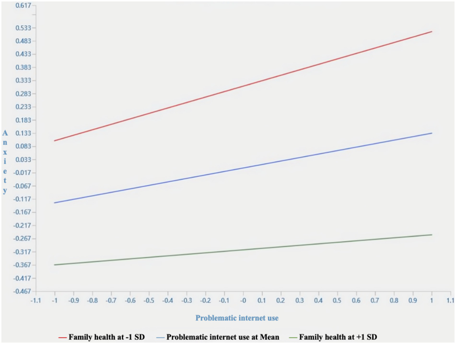 H5: Family health has a moderating effect between problematic internet use and anxiety.