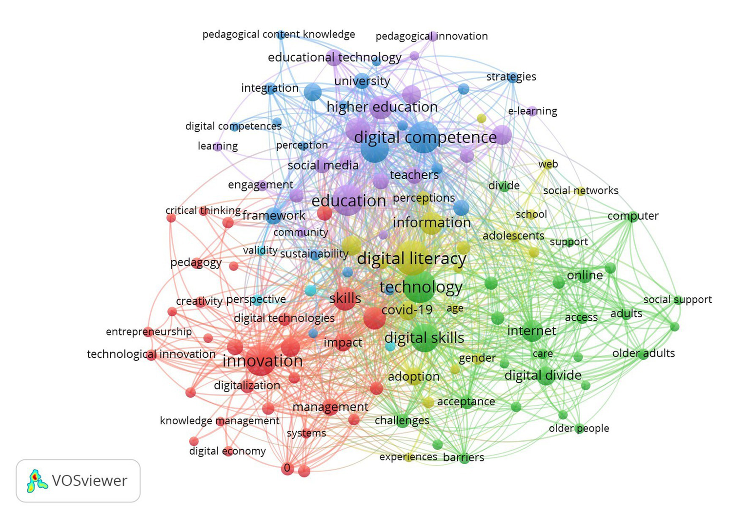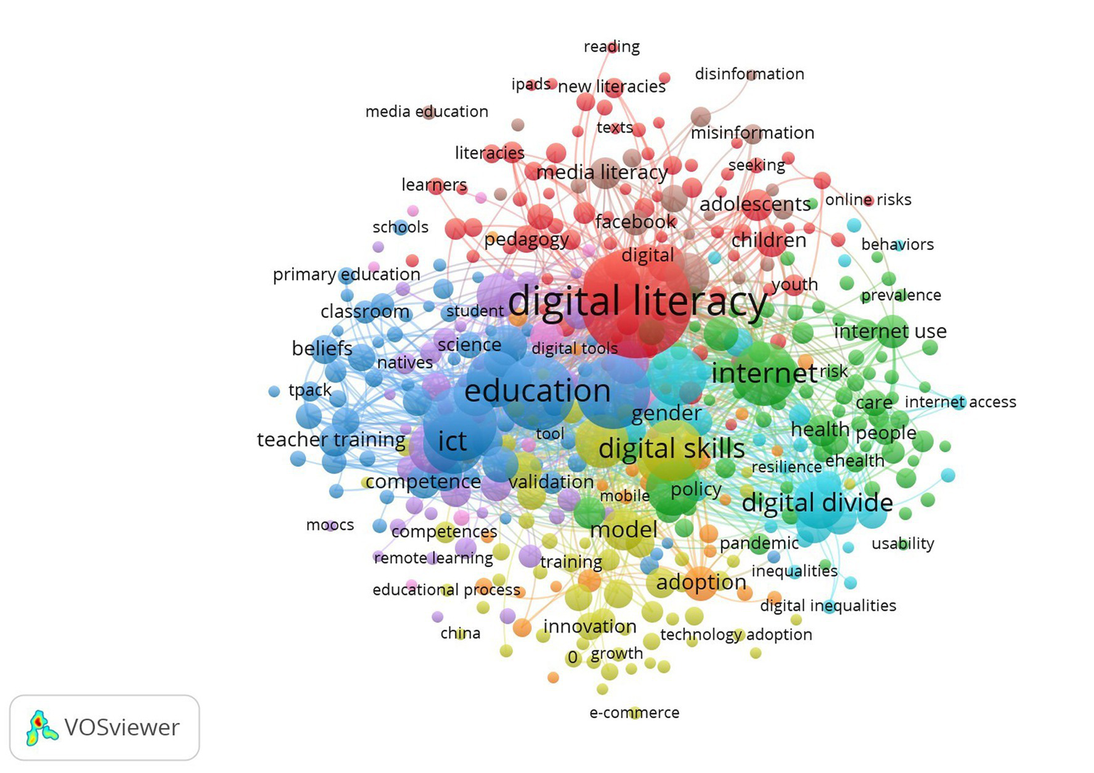 Co-occurrence network visualization of digital literacy.