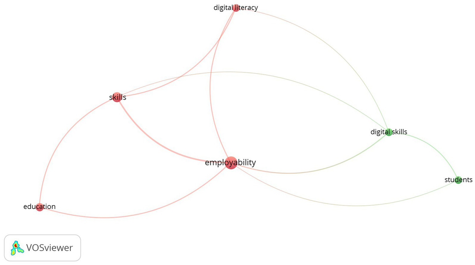 Co-occurrence network visualization of digital literacy and employability.