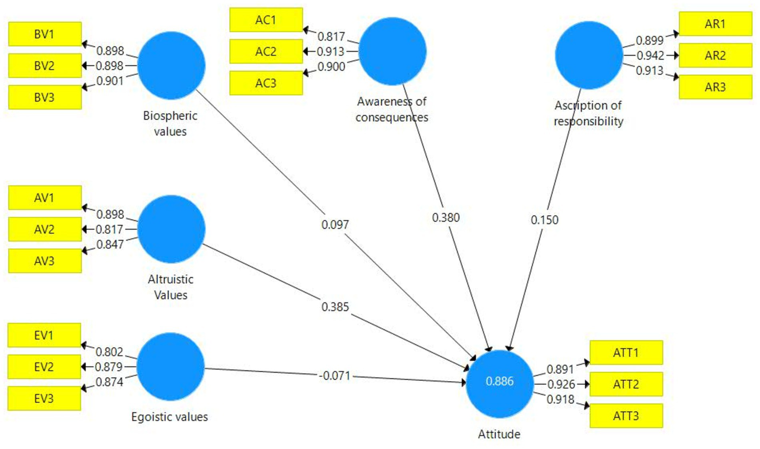 | Egoistic values | 0.58 | 0.365 | 0.328 | 0.780 | 0.611 |