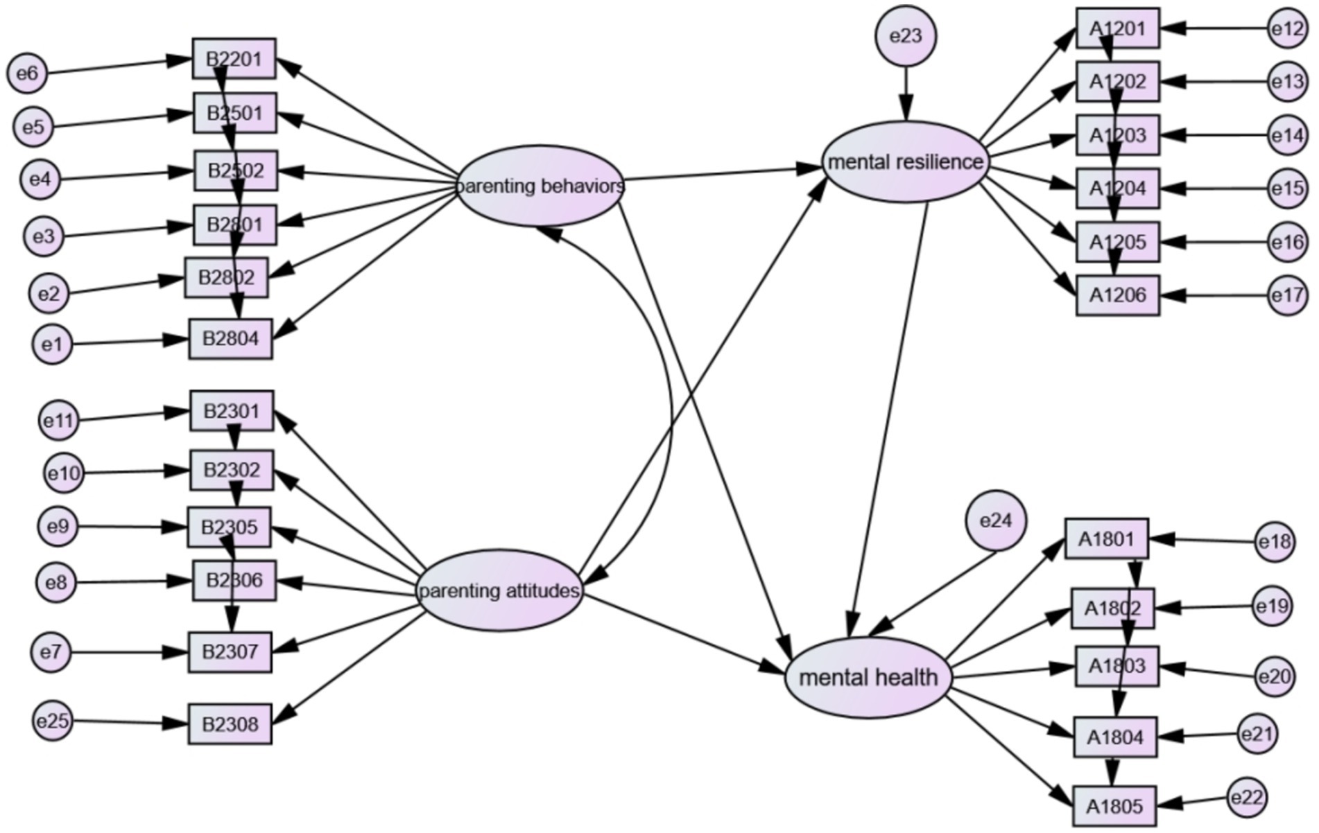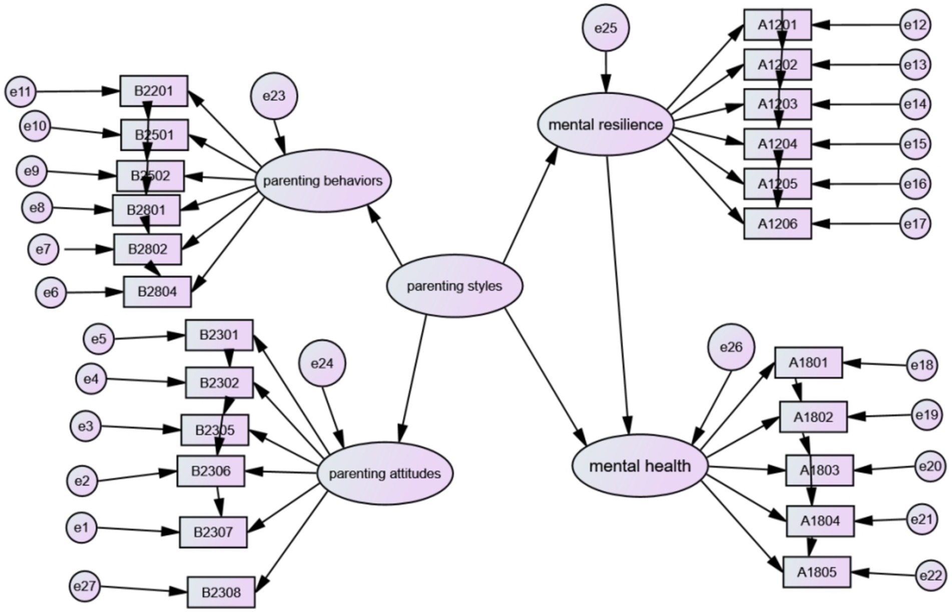 Hypothesis 3: Mental resilience plays a mediating effect in parenting styles on the mental health of left-behind children.